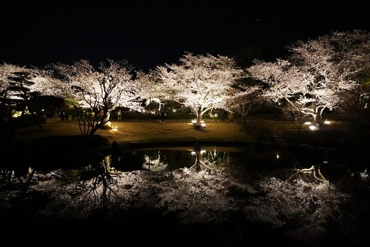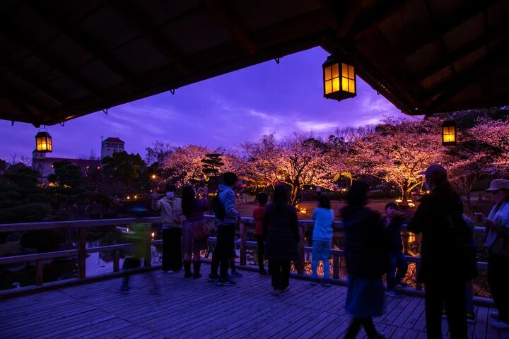 しあわせの村の日本庭園の桜(ソメイヨシノ)の開花にあわせて、日本庭園を夜間に臨時開園し桜をライトアップします。
