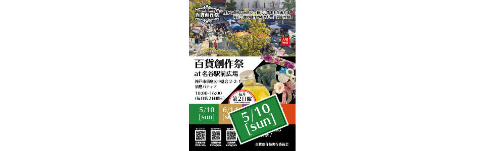 熱意あふれる個人作家の逸品作品展示販売のイベント。お菓子・デザートやアツアツの食品、キッチンカーも出店。人の温かみを感じることができる手づくりの素晴らしさを楽しんで。ロケーションはショッピングセンター・専門店パティオと大丸百貨店・名谷駅に囲まれていて、周辺は広大な住宅地が広がるベッドタウンがあり、とても華やかで賑やかな広場。出店者も募集。