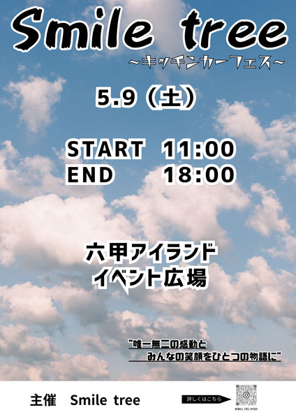 | 公式サイト | https://www.kobe-meriken.or.jp/event/smile-tree-%E3%82%AD%E3%83%83%E3%83%81%E3%83%B3%E3%82%AB%E3%83%BC%EF%BC%86%E3%83%A9%E3%83%B3%E3%82%BF%E3%83%B3%E3%83%95%E3%82%A7%E3%82%B9/ |